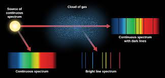 Above is a representation of the process by which spectral lines appear by the time light travels through space and reaches observers.