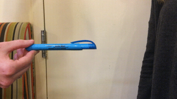 The Right-Hand Rule can also be used when we are given the magnetic field for the coil, and we need to find the current. To find the current, point your thumb in the direction of the magnetic field. The direction that your fingers wrap around is the direction that conventional current is moving around the coil. This idea can be seen demonstrated below.