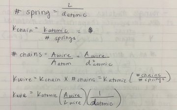 It is difficult to measure the stiffness of an interatomic bond directly, so instead we can analyze data from macroscopic experiments to determine this quantity. We will consider the stiffness of an interatomic bond as a spring.