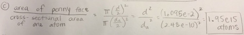 [math]\displaystyle{ d_{atom} = (v_{atom})^{1/3}=(1.53e-29m^2)^{1/3} = 2.48e-10 m }[/math]