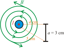 4) Find the magnetic flux through the square with sides 3 cm, running in the same direction as the current-carrying wire as shown in the diagram below.