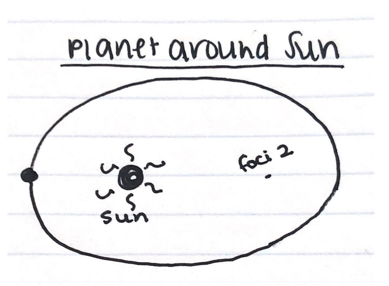 A diagram depicting how planet's orbit around the Sun, according to Kepler's first law.