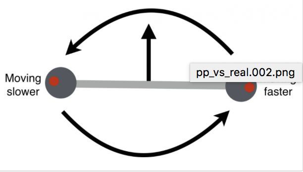 It is important to really think about translational kinetic energy as the movement of the center of mass and only that. In the point particle system, only translational kinetic energy is present because we are visualizing the object only as its center of mass, and that is therefore the only kind of movement we have. Let's think about a baton. The baton can be twirled and tossed. If you think of the baton only in terms of its center of mass, you realize that the center of mass only has one kind of movement: being tossed. It is useful to think of the baton as a crushed particle.